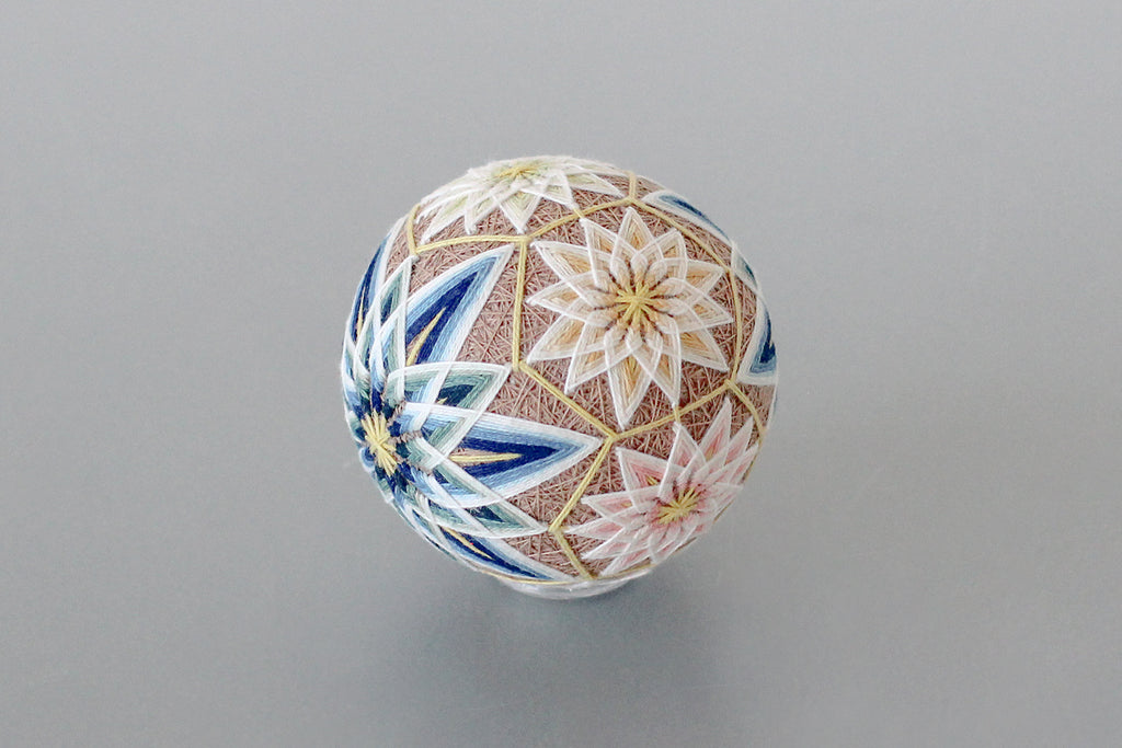 The temari is made by wrapping and stitching cotton threads that have been gently dyed using plant dyes one by one.