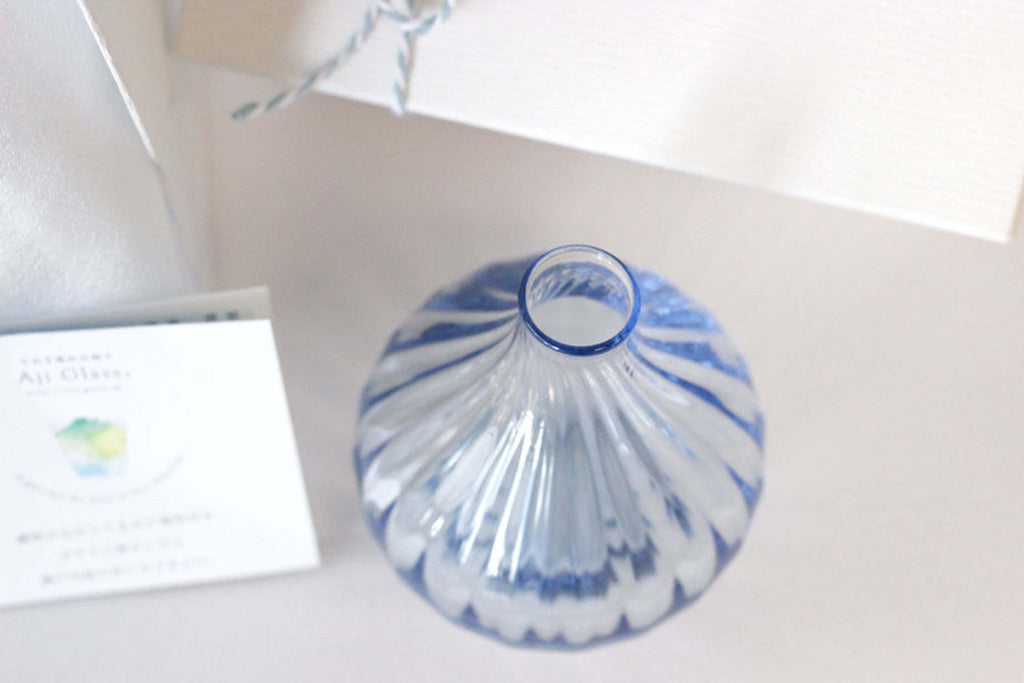 贈り物にぴったりの花器は インテリア性も高く、蒼く澄んだ色が美しいです。