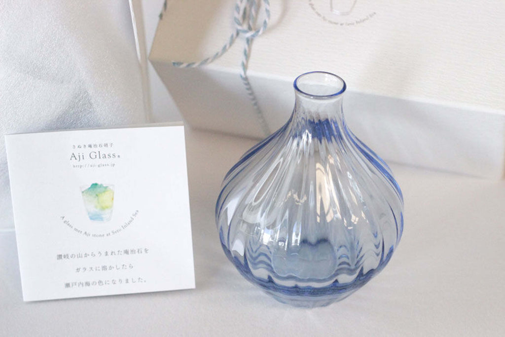 ガラスに溶かして出てくる瀬戸内の空と海の色です。