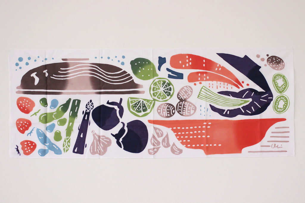 香川県在修イラストレーターオビカカズミさんによる瀬戸内のオリジナル手ぬぐい。香川県の特産品でもあるいりことオリーブがちりばめられた優しい色合いの手ぬぐいです。2022年新作「さぬき野菜」柄の手ぬぐいが登場、2024年新作はさぬきの新しい名産「アスパラガス」!ほっこり美味しいさぬきの食べ物をどうぞ。