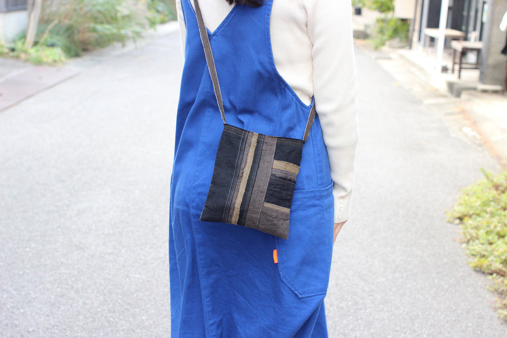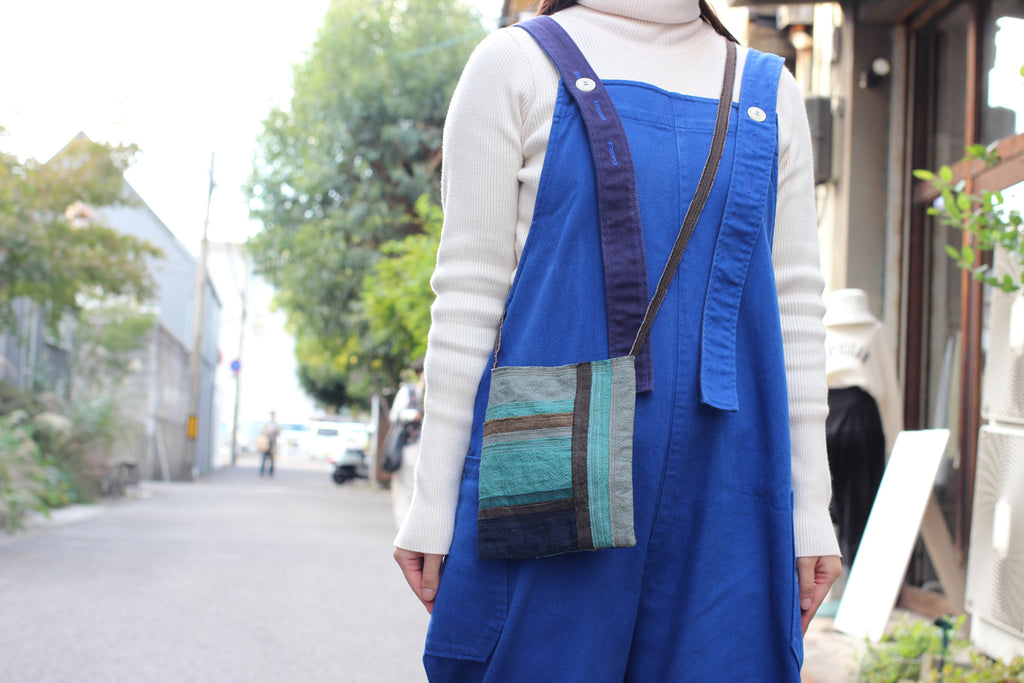 ポシェットは全て一点モノ、ひとつひとつ配色が異なります。大まかな色で記載しております。布地の配色、風景は写真とは異なる場合がございますので、予めご了承下さいますようお願いいたします。