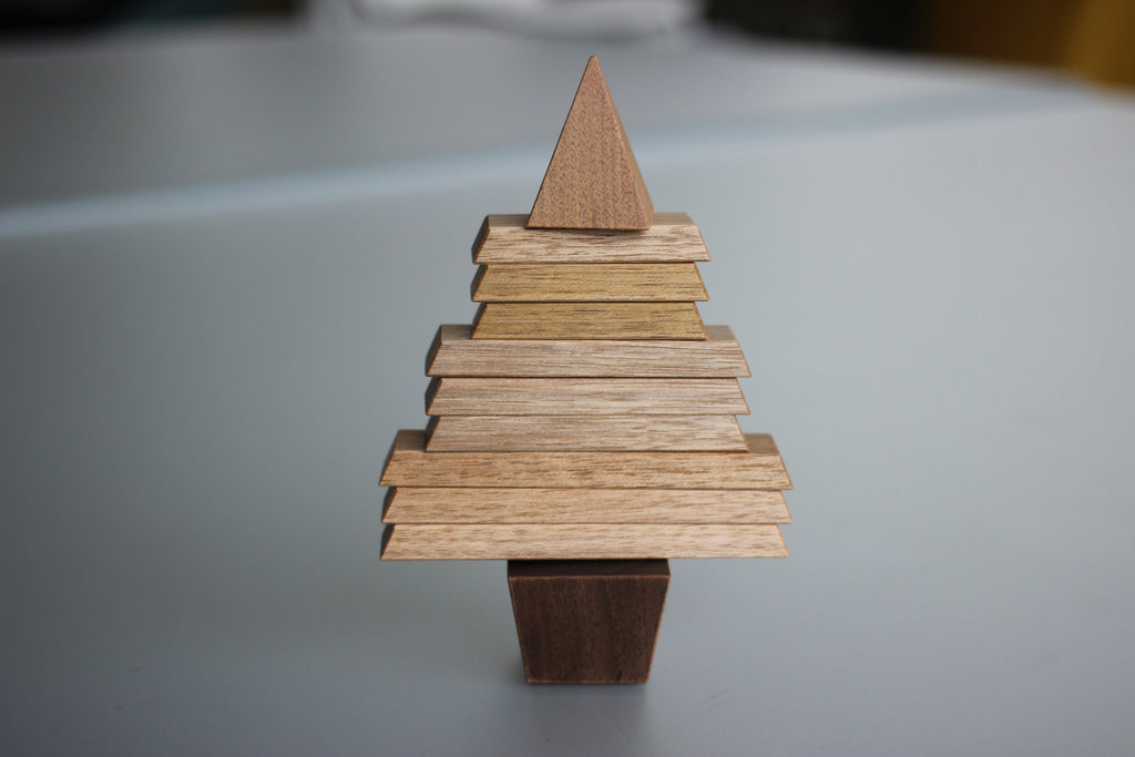 <作家さんからのメッセージ>元々はご依頼で製作した大きな木製のツリーのモックアップ(ミニチュア模型)でした。小さいバランス感が気に入って長くつくり続けている作品です。インテリアとしてクリスマスじゃなくても飾ってもらえるように…