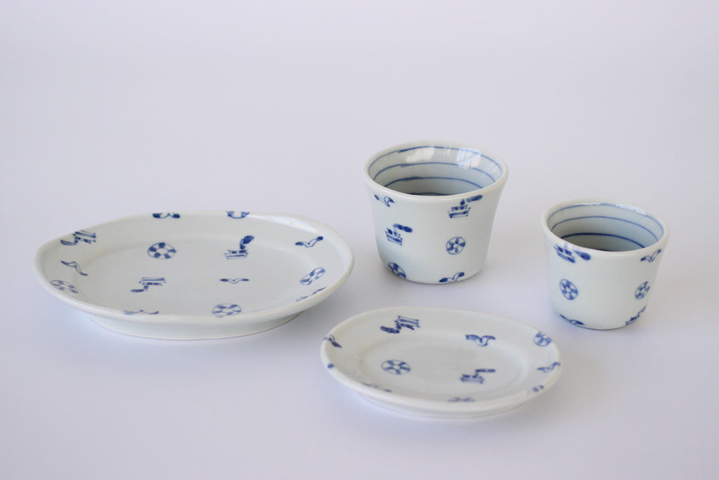 | 素材:白磁、藍色の染付 |