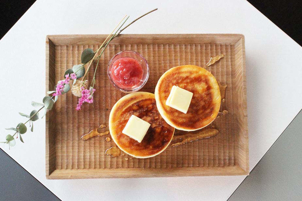 デザインラボラトリー蒼で出していたとっても素朴なホットケーキ。その魅力を引き出してくれていたのがこちらのお皿です。たっぷりのハチミツが流れ落ちないように縁を作ってもらって、ジャムも添えられる寸法でお願いしたもの。