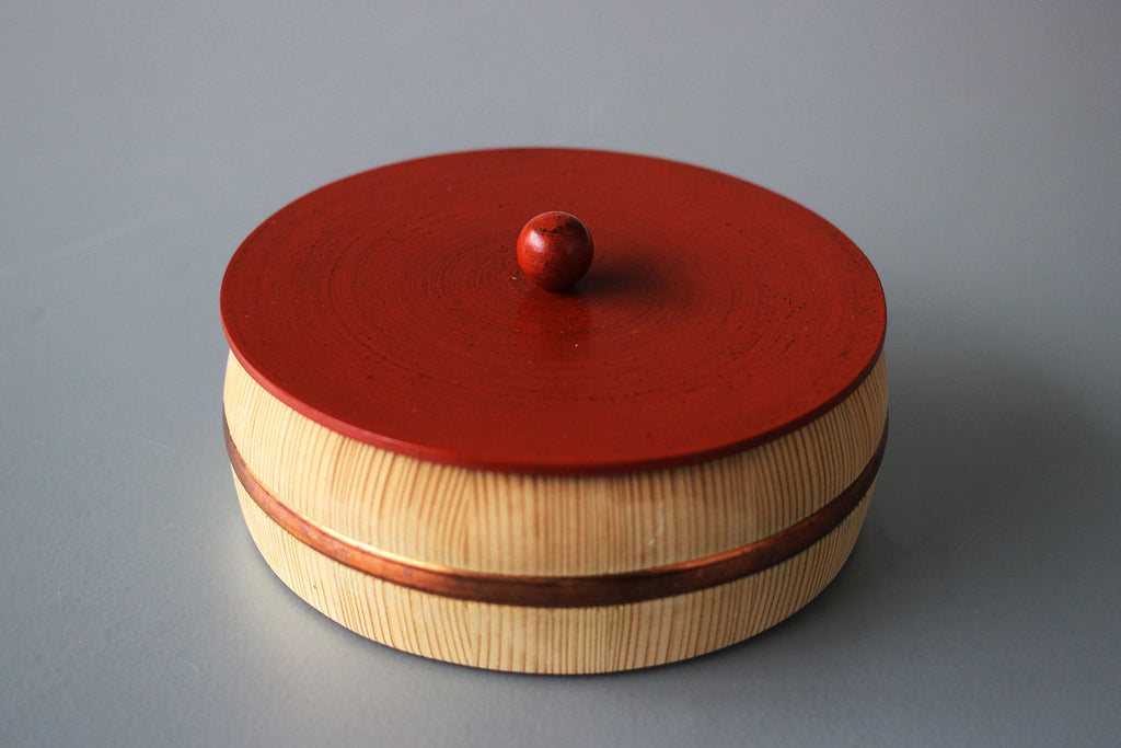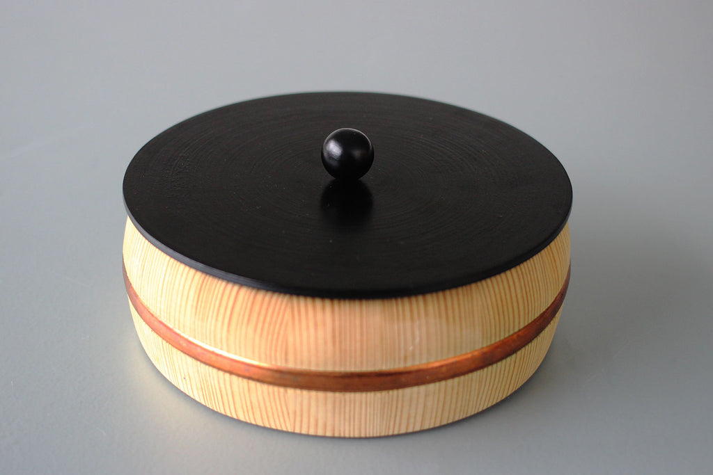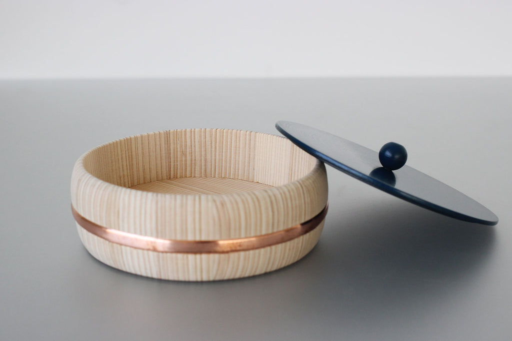 讃岐桶樽谷川木工芸さんとのコラボレーションで生まれた、「さぬき漆sinra × 谷川木工芸 菓子器」。