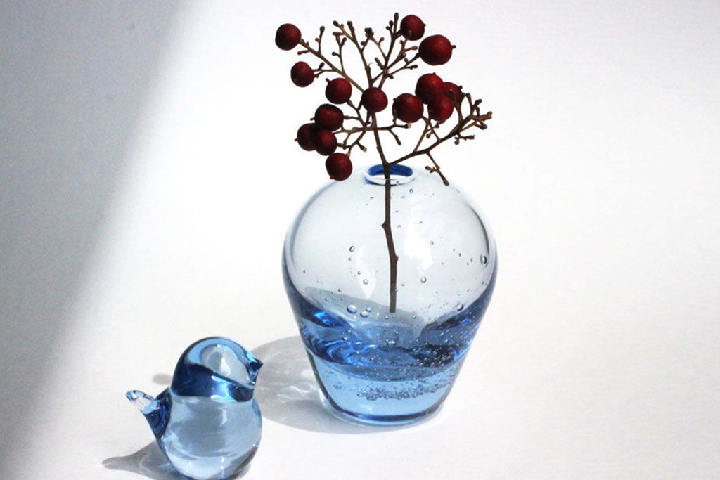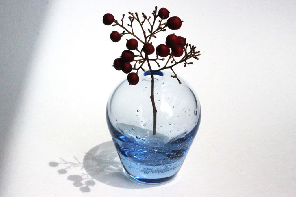 贈り物にぴったりの花器は インテリア性も高く、蒼く澄んだ色が美しいです。