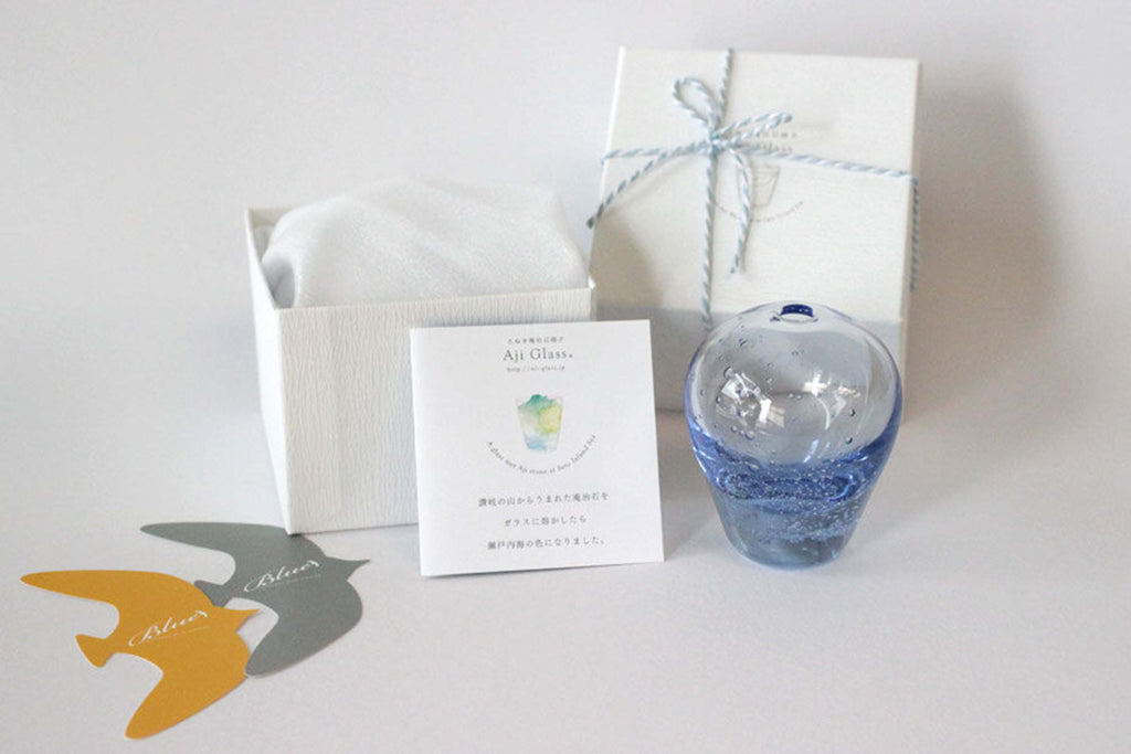 ガラスに溶かして出てくる瀬戸内の空と海の色です。