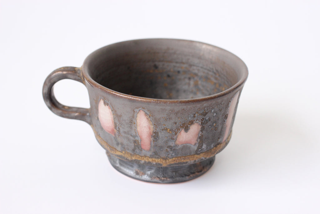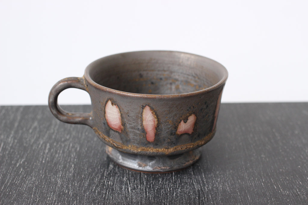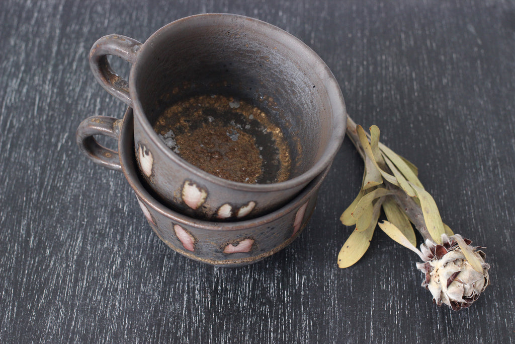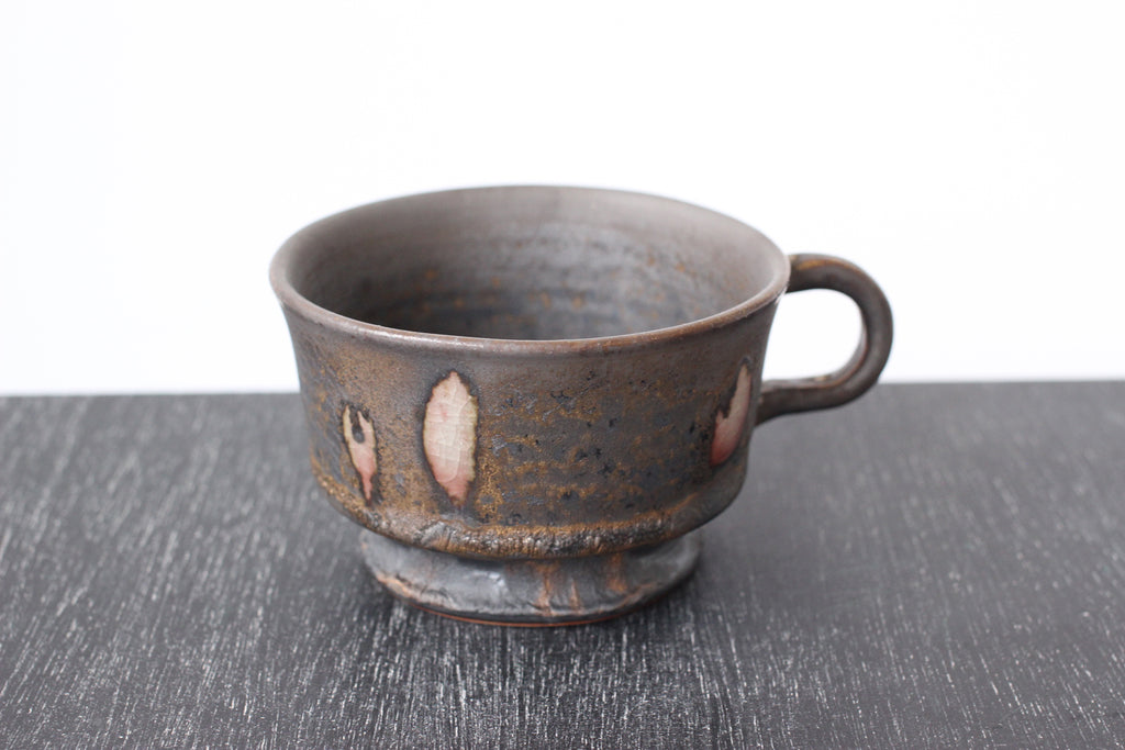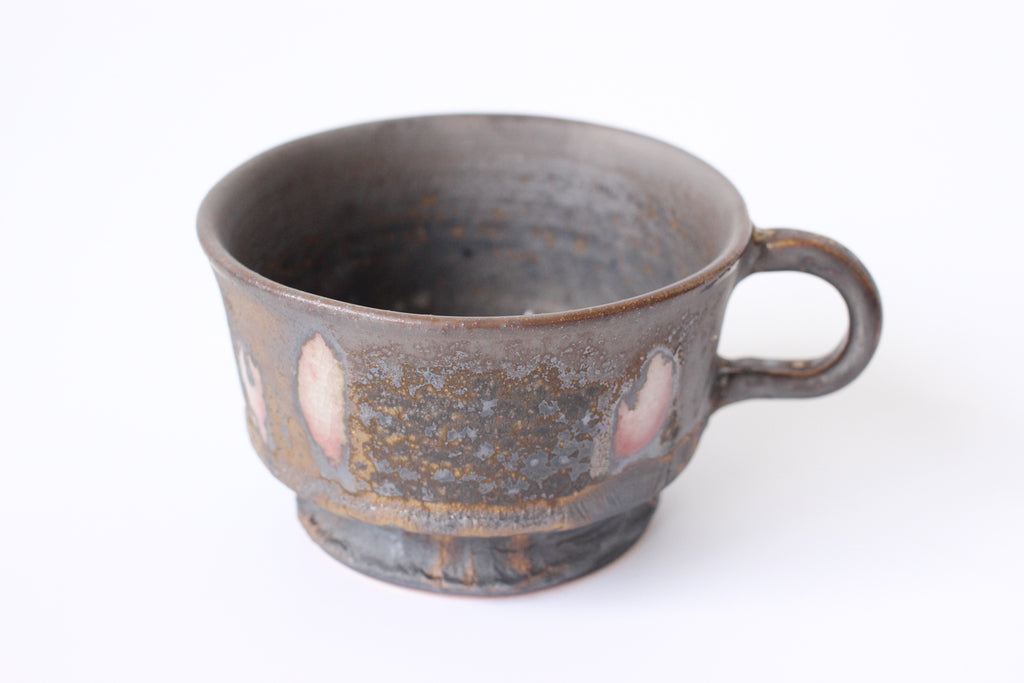 陶芸家平岡朋美さんが北欧をイメージしたコーヒーカップシリーズ。釉薬の調合と火の加減で色が浮かび上がり、全て柄が異なる一点物になります。故郷讃岐の移り変わる空の色をイメージして調合、宇宙のような不思議な模様が広がり、のんびりとした瀬戸内時間が流れます。