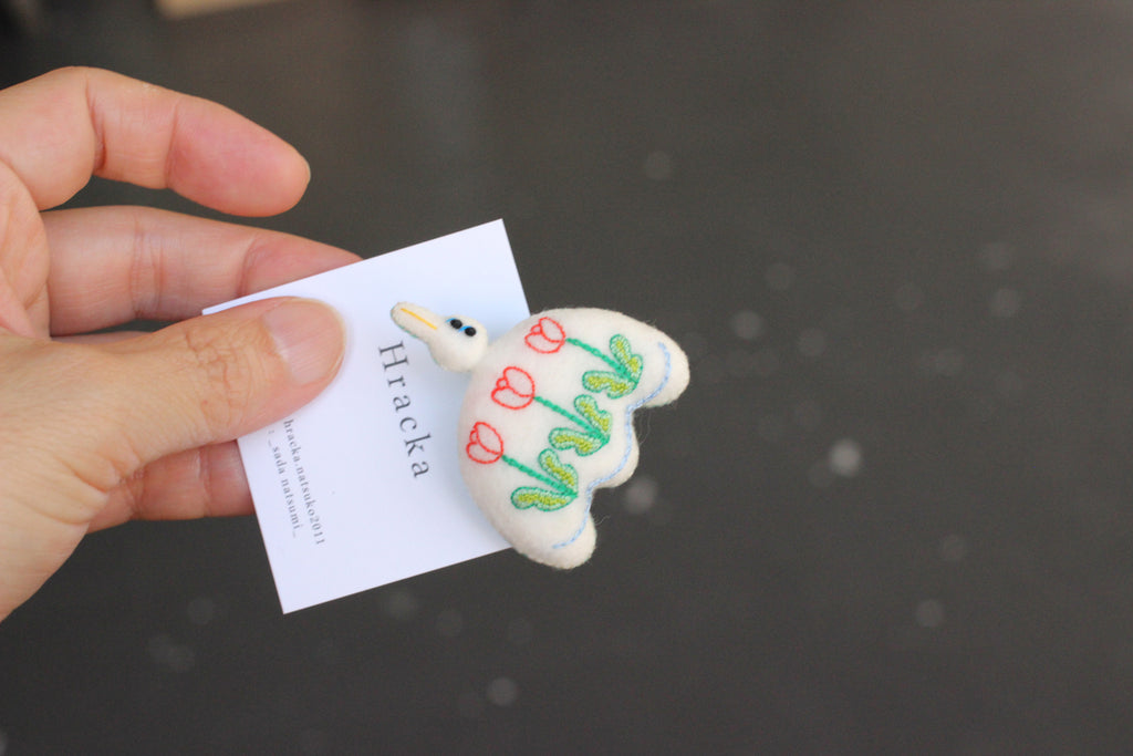 ユニークな発想でふふふっと笑顔になれる刺繍を施すフラチュカさんのブローチ。着けていると知らない人に声をかけられて話しが弾んでしまいます。個性的だけど親しみやすい不思議な魅力を楽しんで下さいね。