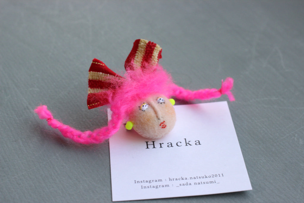 フラチュカ A-08 おんなのこブローチ ピンクのおさげちゃん - 入荷待ち商品です。入荷次第発送いたします。