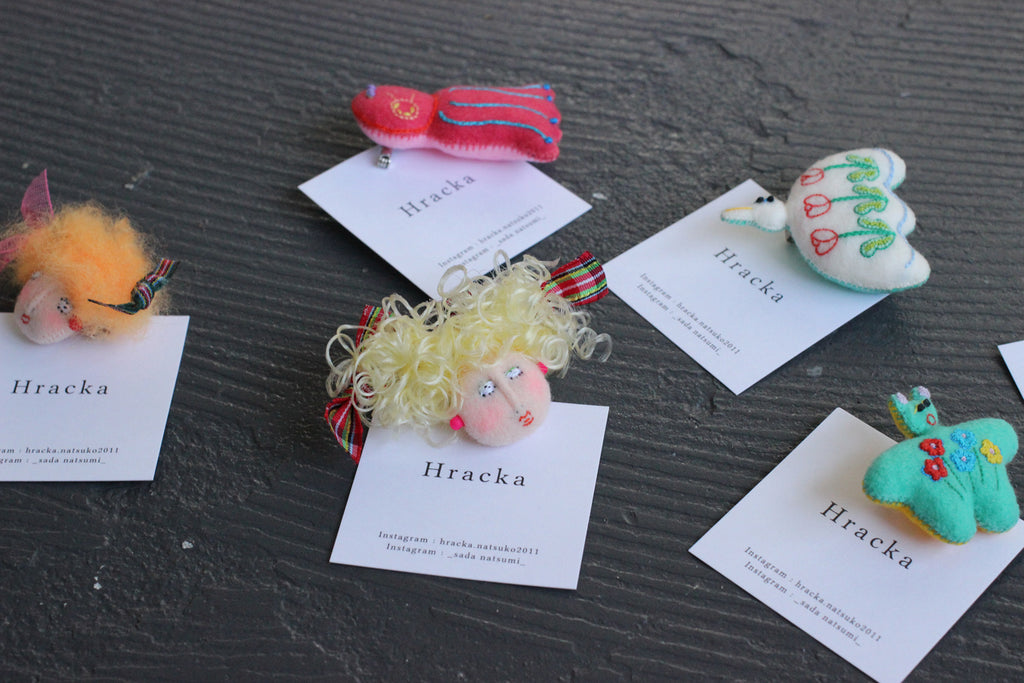 ユニークな発想でふふふっと笑顔になれる刺繍を施すフラチュカさんのブローチ。着けていると知らない人に声をかけられて話しが弾んでしまいます。個性的だけど親しみやすい不思議な魅力を楽しんで下さいね。