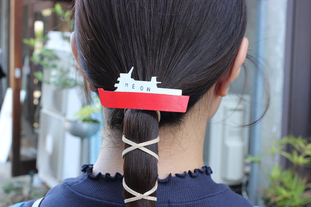 鉄と灯台をこよなく愛する鉄作家「槙塚登 」さんのUMIKOTOシリーズ。高松港と女木島、男木島を結ぶ「めおん」号のポニーフック。ポニーテールしたゴムに挿していつも海辺を感じられるアクセサリーです。着物の帯に差し込んで香川を楽しむのも良いです。