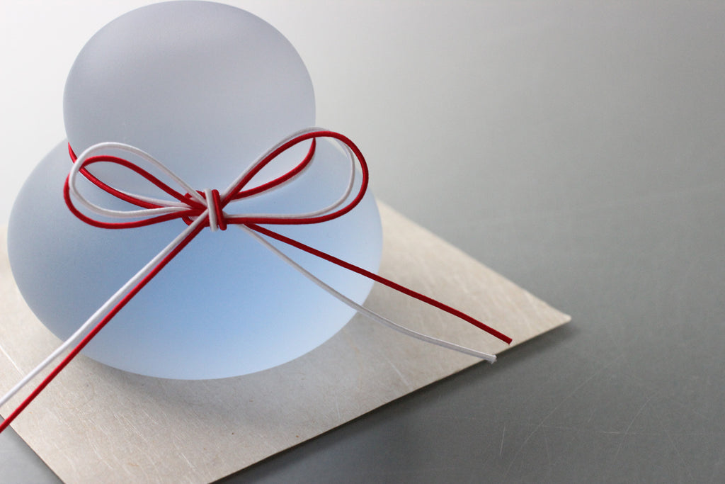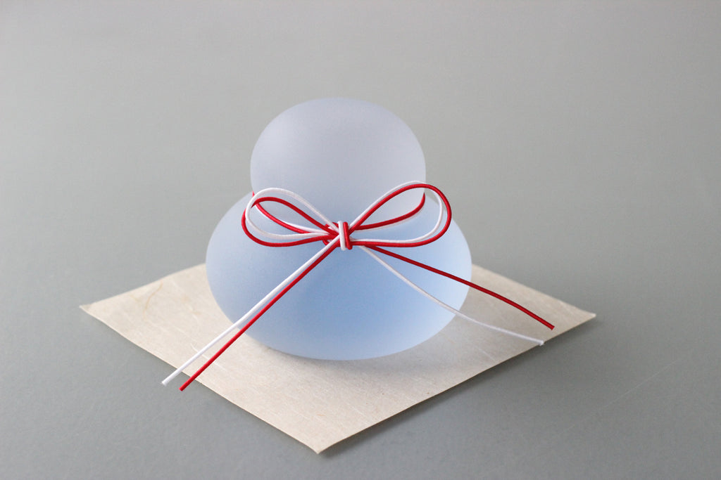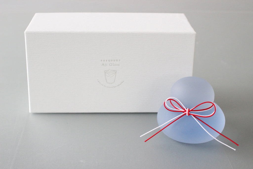 The ""Kagami-mochi"" is a traditional Japanese decorations that helps to welcome the New Year and gives you power for the next year. Originally made with stacked rice cakes, the soft atmosphere of this decoration is expressed in glass. These Kagami-mochi are made with appreciation to the Japanese Shinto gods and filled with our wishes for a prosperous new year. We will deliver it to you in a special decorative box. Choose from