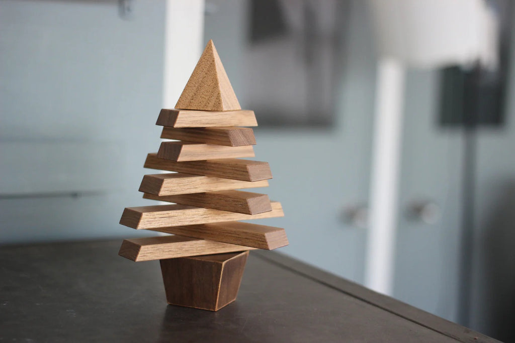 <作家さんからのメッセージ>元々はご依頼で製作した大きな木製のツリーのモックアップ(ミニチュア模型)でした。小さいバランス感が気に入って長くつくり続けている作品です。インテリアとしてクリスマスじゃなくても飾ってもらえるように…